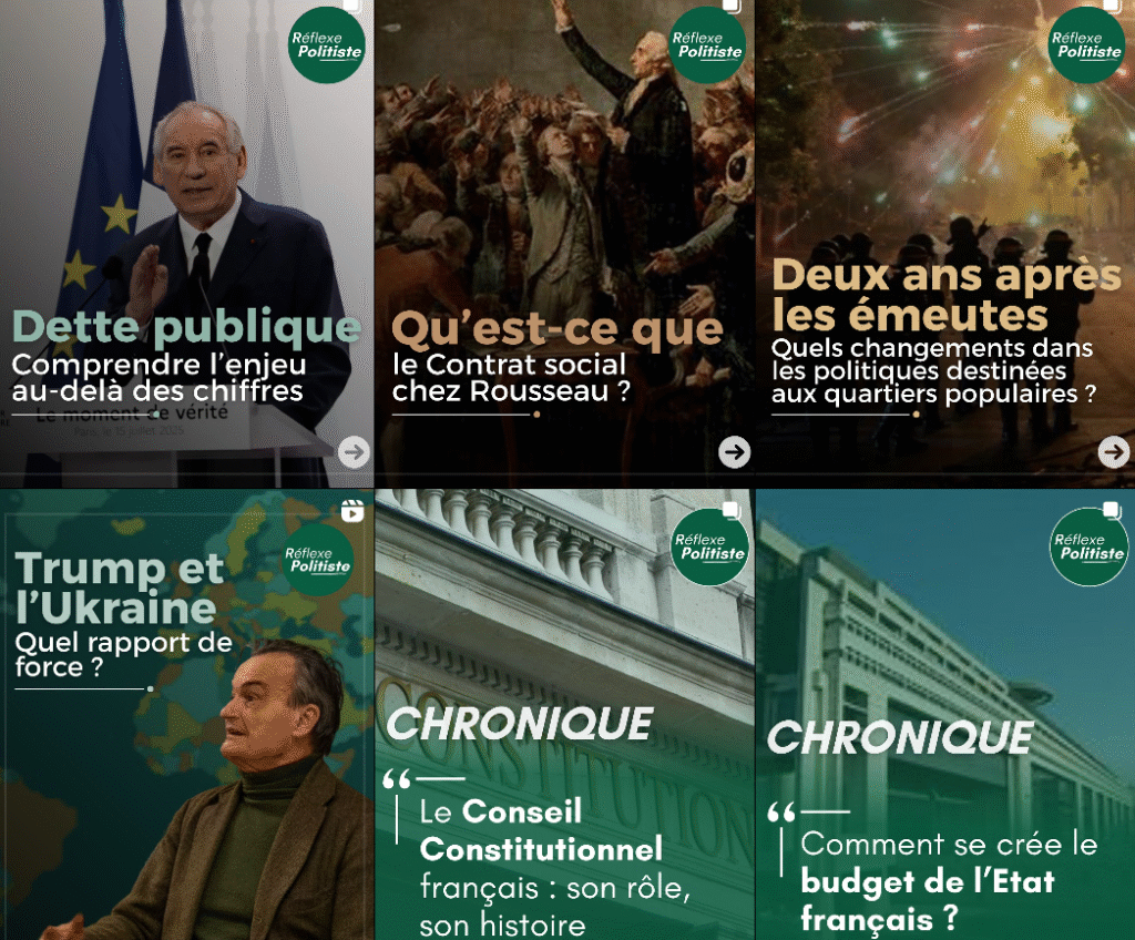 Né de l’initiative d’étudiant·e·s en Science politique de l’Université Paris 1 Panthéon Sorbonne, Réflexe Politiste est une association dont l’engagement est simple: sortir la Science politique des facs pour la rendre accessible à tou·te·s. Face à la montée des périls et des incertitudes la connaissance n’est pas un luxe. Nous sommes convaincu·e·s qu’elle doit être un levier essentiel de nos prises de décision et nos manières d’agir. Elle doit devenir un véritable outil populaire, au service de la compréhension collective et du débat démocratique.