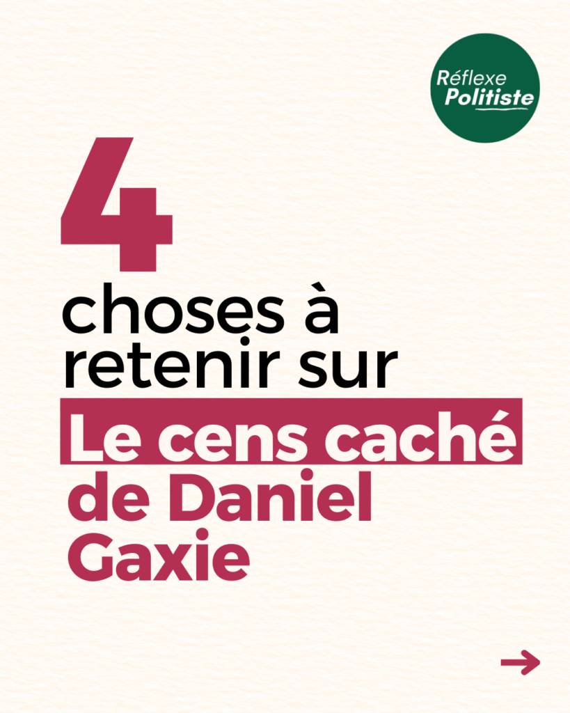 « Le Cens caché (1978) est un ouvrage du politiste D. Gaxie qui développe un concept éponyme. L’auteur s’intéresse au vote depuis que l’on est passé au suffrage universel – capacité de toutes et tous de voter. Il oppose ce vote universel au suffrage censitaire où seulement les plus riches pouvaient voter, ceux qui payaient l’impôt nommé cens. Cet ouvrage de sociologie politique va aller plus loin que le simple droit pour analyser les effets concrets du vote en France»