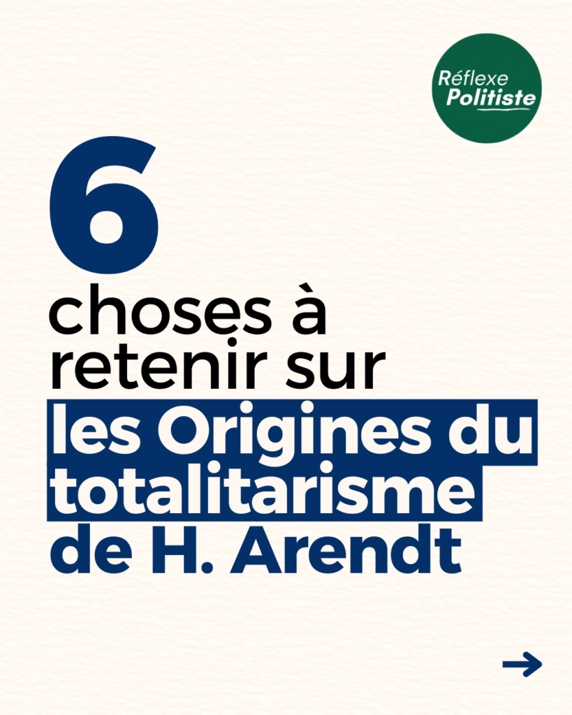 « Arendt montre que le totalitarisme n’est pas une simple variante de la tyrannie, de la dictature ou du despotisme. C’est une forme de domination politique totalement nouvelle, née au XXe siècle, et qui vise non seulement à contrôler l’action des individus, mais aussi leur pensée et leur vie intérieure »